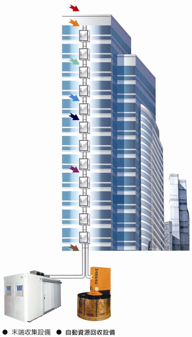 重力式收集系統是垃圾收集系統的重要方式之一,系統無需配置負壓風機,垃圾依靠自身重力落入豎向管道內,從垃圾投入、輸送、除臭、消毒、壓縮、貯存、排出等,全程自動化控制,改變傳統的垃圾收集模式,實現垃圾的全封閉、不落地處理。適用于建筑規模相對較小的醫療樓、寫字樓、賓館、住宅樓等場所。